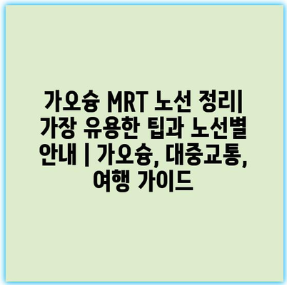 가오슝 MRT 노선 정리| 가장 유용한 팁과 노선별 안내 | 가오슝, 대중교통, 여행 가이드