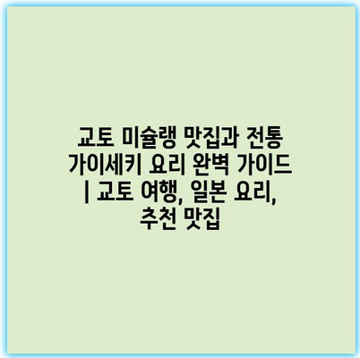 교토 미슐랭 맛집과 전통 가이세키 요리 완벽 가이드 | 교토 여행, 일본 요리, 추천 맛집