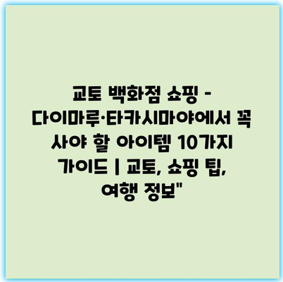 교토 백화점 쇼핑 – 다이마루·타카시마야에서 꼭 사야 할 아이템 10가지 가이드 | 교토, 쇼핑 팁, 여행 정보