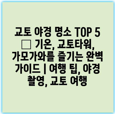 교토 야경 명소 TOP 5 – 기온, 교토타워, 가모가와를 즐기는 완벽 가이드입니다. 이번 블로그에서는 교토의 아름다운 야경을 감상할 수 있는 명소를 소개하고, 여행 팁과 야경 촬영에 대한 정보를 제공하겠습니다.