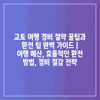 교토 여행 경비 절약 꿀팁과 환전 팁 완벽 가이드 | 여행 예산, 효율적인 환전 방법, 경비 절감 전략