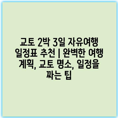 교토는 일본의 역사와 문화를 느낄 수 있는 아름다운 도시입니다. 2박 3일의 짧은 시간 안에 교토의 주요 명소를 방문하고, 일본의 전통을 경험할 수 있는 계획을 세워보겠습니다. 아래의 일정을 참고하여 교토에서의 소중한 시간을 만끽해보세요.