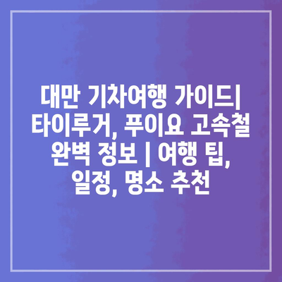 대만 기차여행 가이드| 타이루거, 푸이요 고속철 완벽 정보 | 여행 팁, 일정, 명소 추천