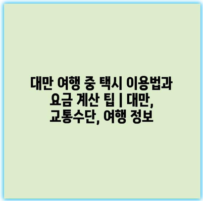 대만 여행 중 택시 이용법과 요금 계산 팁을 알아보겠습니다.
