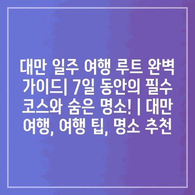 “7일 동안 즐길 수 있는 대만 루트 추천은 편안하고 알차게 계획된 여행을 돕습니다.”