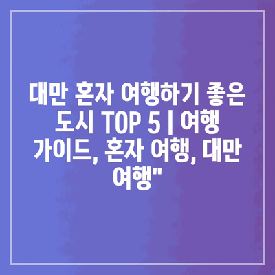 답변. 대만 혼자 여행하기 좋은 도시로는 타이페이, 타이중, 타이난, 켄팅, 일로우가 있습니다. 이 도시들은 각각 독특한 매력과 편리한 교통을 제공하여 혼자 여행하는 분들에게 안전하고 즐거운 경험을 제공합니다.