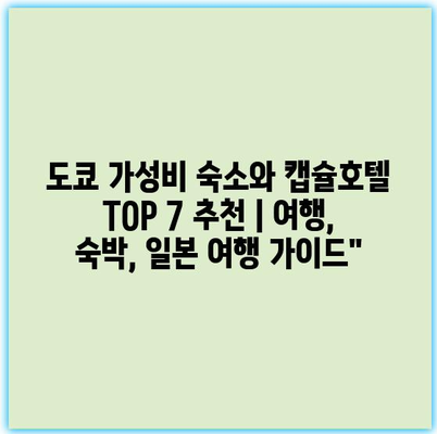 도쿄 가성비 숙소와 캡슐호텔 TOP 7 추천 | 여행, 숙박, 일본 여행 가이드에서 도쿄 여행을 계획 중이라면, 가성비 좋은 숙소를 찾는 것이 중요합니다.