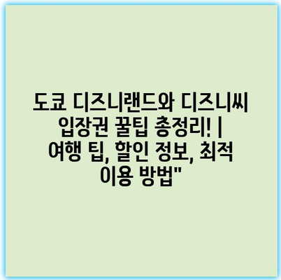 도쿄 디즈니랜드와 디즈니씨 입장권 꿀팁 총정리! | 여행 팁, 할인 정보, 최적 이용 방법”