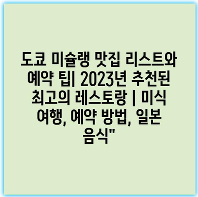 “2023년 도쿄 미슐랭 맛집 리스트는 요리의 예술성과 완벽한 서비스를 제공합니다.”