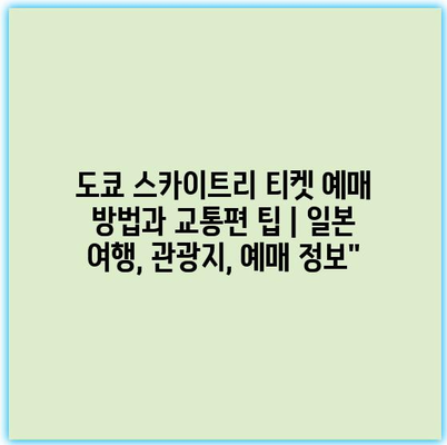도쿄 스카이트리 티켓 예매 방법과 교통편 팁 | 일본 여행, 관광지, 예매 정보에 대해 자주 묻는 질문 TOP 5