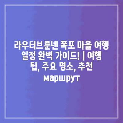 여행 일정은 단순하면서도 알찬 구성으로 계획해 보세요. 첫날에는 라우터브룬넨 폭포를 만나고, 그 주변을 산책하며 사진 찍는 시간을 가지세요.