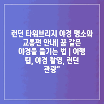 런던 타워브리지 야경 명소와 교통편 안내| 꿈 같은 야경을 즐기는 법 | 여행 팁, 야경 촬영, 런던 관광”