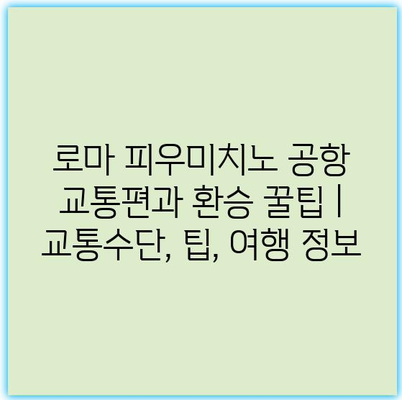 로마 피우미치노 공항 교통편과 환승 꿀팁 | 교통수단, 팁, 여행 정보