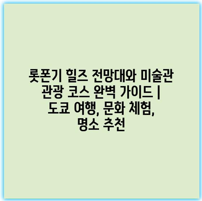 롯폰기 힐즈 전망대와 미술관 관광 코스 완벽 가이드 | 도쿄 여행, 문화 체험, 명소 추천 에 대해 자주 묻는 질문 TOP 5