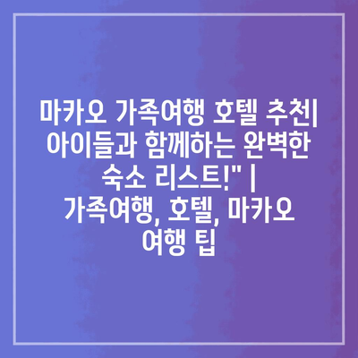 마카오 가족여행 호텔 추천| 아이들과 함께하는 완벽한 숙소 리스트!” | 가족여행, 호텔, 마카오 여행 팁 에 대해 자주 묻는 질문 TOP 5