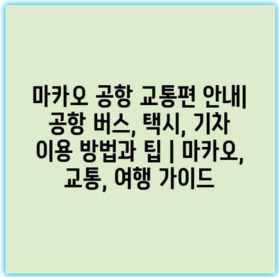 마카오 공항 교통편 안내| 공항 버스, 택시, 기차 이용 방법과 팁 | 마카오, 교통, 여행 가이드