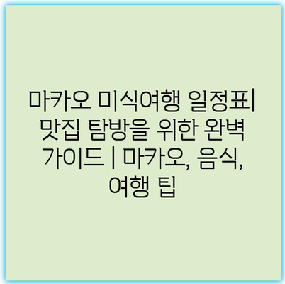 마카오 미식여행 일정표| 맛집 탐방을 위한 완벽 가이드 | 마카오, 음식, 여행 팁