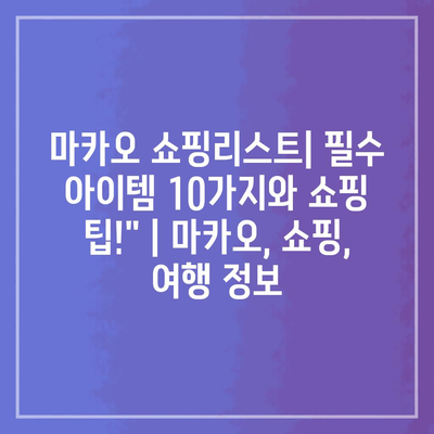 마카오 쇼핑리스트| 필수 아이템 10가지와 쇼핑 팁!” | 마카오, 쇼핑, 여행 정보