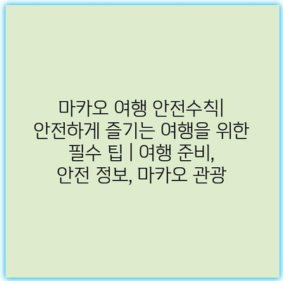 마카오 여행 안전수칙| 안전하게 즐기는 여행을 위한 필수 팁 | 여행 준비, 안전 정보, 마카오 관광