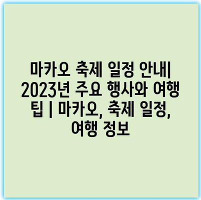 마카오 축제 일정 안내| 2023년 주요 행사와 여행 팁 | 마카오, 축제 일정, 여행 정보