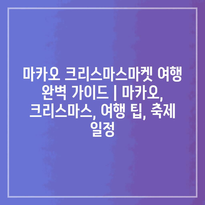 마카오 크리스마스마켓 여행 완벽 가이드 | 마카오, 크리스마스, 여행 팁, 축제 일정