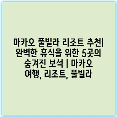 마카오에서의 풀빌라 숙소는 다양하며, 각기 다른 매력을 지니고 있습니다. 다음은 마카오에서 추천하는 프라이빗 풀빌라 리조트 목록입니다: