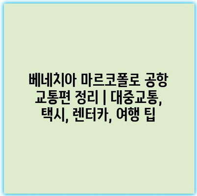 “베네치아 마르코폴로 공항 대중교통 옵션 안내는 여행자에게 실질적인 이동 수단을 제공합니다.”