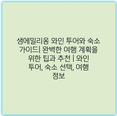 정확한 여행 계획과 정보로, 생에밀리옹에서의 와인 여행을 더욱 특별하게 만들어보세요!