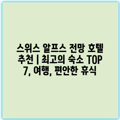 스위스 알프스 전망 호텔 추천 | 최고의 숙소 TOP 7, 여행, 편안한 휴식 에 대해 자주 묻는 질문 TOP 5