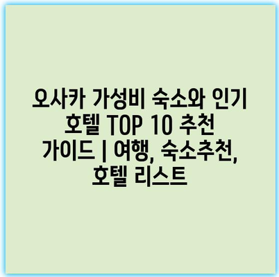 오사카 가성비 숙소와 인기 호텔 TOP 10 추천 가이드 | 여행, 숙소추천, 호텔 리스트 에 대해 자주 묻는 질문 TOP 5