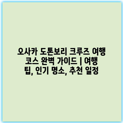 오사카 도톤보리 크루즈 여행 코스 완벽 가이드 | 여행 팁, 인기 명소, 추천 일정