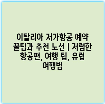 이탈리아 저가항공 예약 꿀팁과 추천 노선에 대해 알아보겠습니다.