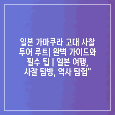 일본 가마쿠라 고대 사찰 투어 루트| 완벽 가이드와 필수 팁 | 일본 여행, 사찰 탐방, 역사 탐험