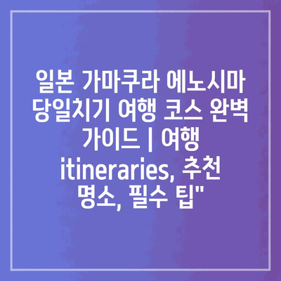 일본 가마쿠라 에노시마 당일치기 여행 코스 완벽 가이드 | 여행 itineraries, 추천 명소, 필수 팁”