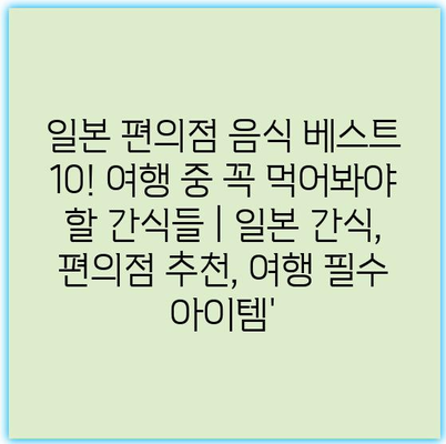 “일본 편의점에서 꼭 사야 할 베스트 간식 10선은 일본 여행의 매력을 극대화할 것입니다.”