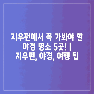 답변. 지우펀의 야경을 감상할 수 있는 최고의 장소는 바로 지우펀 전망대입니다. 이곳은 밤이 되면 도시의 환한 조명이 펴지는 모습을 한눈에 담을 수 있습니다. 전망대는 사람들이 많이 찾는 곳으로, 사진 촬영에도 적합합니다.