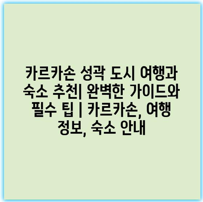 카르카손 성곽 도시 여행과 숙소 추천| 완벽한 가이드와 필수 팁 | 카르카손, 여행 정보, 숙소 안내