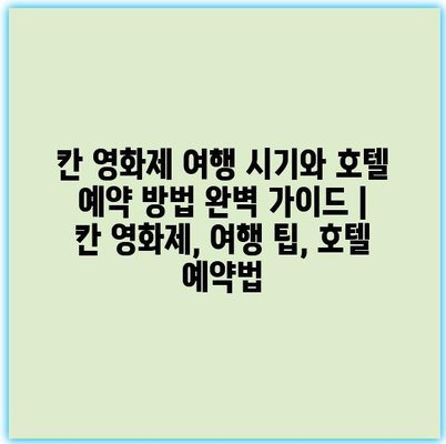 칸 영화제 여행 시기와 호텔 예약 방법 완벽 가이드 | 칸 영화제, 여행 팁, 호텔 예약법 에 대해 자주 묻는 질문 TOP 5