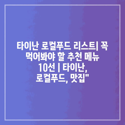 타이난 로컬푸드 리스트| 꼭 먹어봐야 할 추천 메뉴 10선 | 타이난, 로컬푸드, 맛집”에 대해 자주 묻는 질문 TOP 5