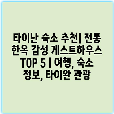 타이난은 전통과 현대가 어우러진 매력적인 도시입니다. 이곳에서의 숙소 선택은 여행의 재미를 한층 더해주는데요.