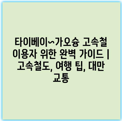 타이베이~가오슝 고속철 이용자 위한 완벽 가이드입니다.