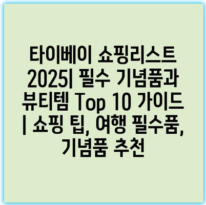 타이베이 쇼핑리스트 2025| 필수 기념품과 뷰티템 Top 10 가이드 | 쇼핑 팁, 여행 필수품, 기념품 추천