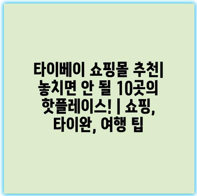 이 리스트에서는 쇼핑몰의 특징과 함께, 각 쇼핑몰에서 만날 수 있는 독특한 매력도 함께 알려드릴게요. 타이베이를 여행하면서 놓치면 안 될 필수적인 스팟이니 꼭 방문해 보세요.