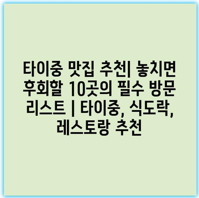 타이중에서의 미식 여행을 계획하고 있다면 이번 추천 리스트를 참고하세요. 다양한 메뉴와 매력이 넘치는 레스토랑들이 여러분을 기다리고 있습니다!
