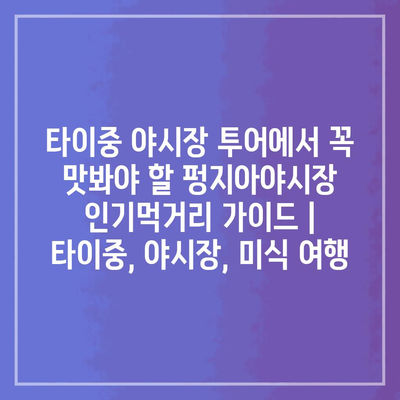 타이중 야시장 투어에서 꼭 맛봐야 할 펑지아야시장 인기먹거리 가이드입니다.