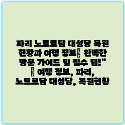 파리 노트르담 대성당 복원 현황과 여행 정보| 완벽한 방문 가이드 및 필수 팁!
