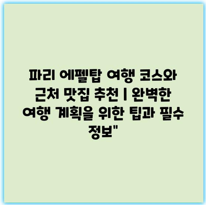 파리 에펠탑 여행 코스와 근처 맛집 추천 | 완벽한 여행 계획을 위한 팁과 필수 정보