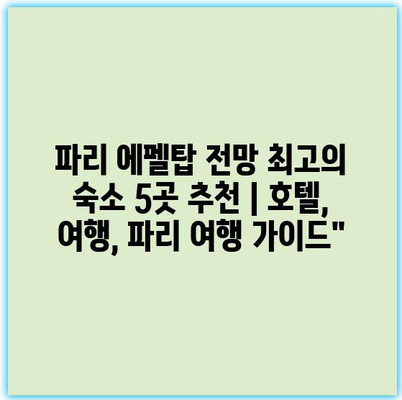 파리 에펠탑 전망 최고의 숙소 5곳 추천 | 호텔, 여행, 파리 여행 가이드