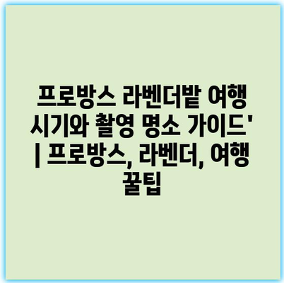 프로방스 라벤더밭 여행 시기와 촬영 명소 가이드’ | 프로방스, 라벤더, 여행 꿀팁 에 대해 자주 묻는 질문 TOP 5