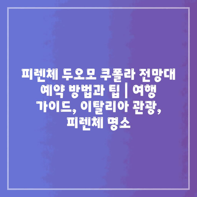 - 두오모 쿠폴라의 전망대를 이용하기 위해서는 사전 예약이 필수입니다. 인기 있는 관광지이므로 미리 예약하는 것이 좋습니다.